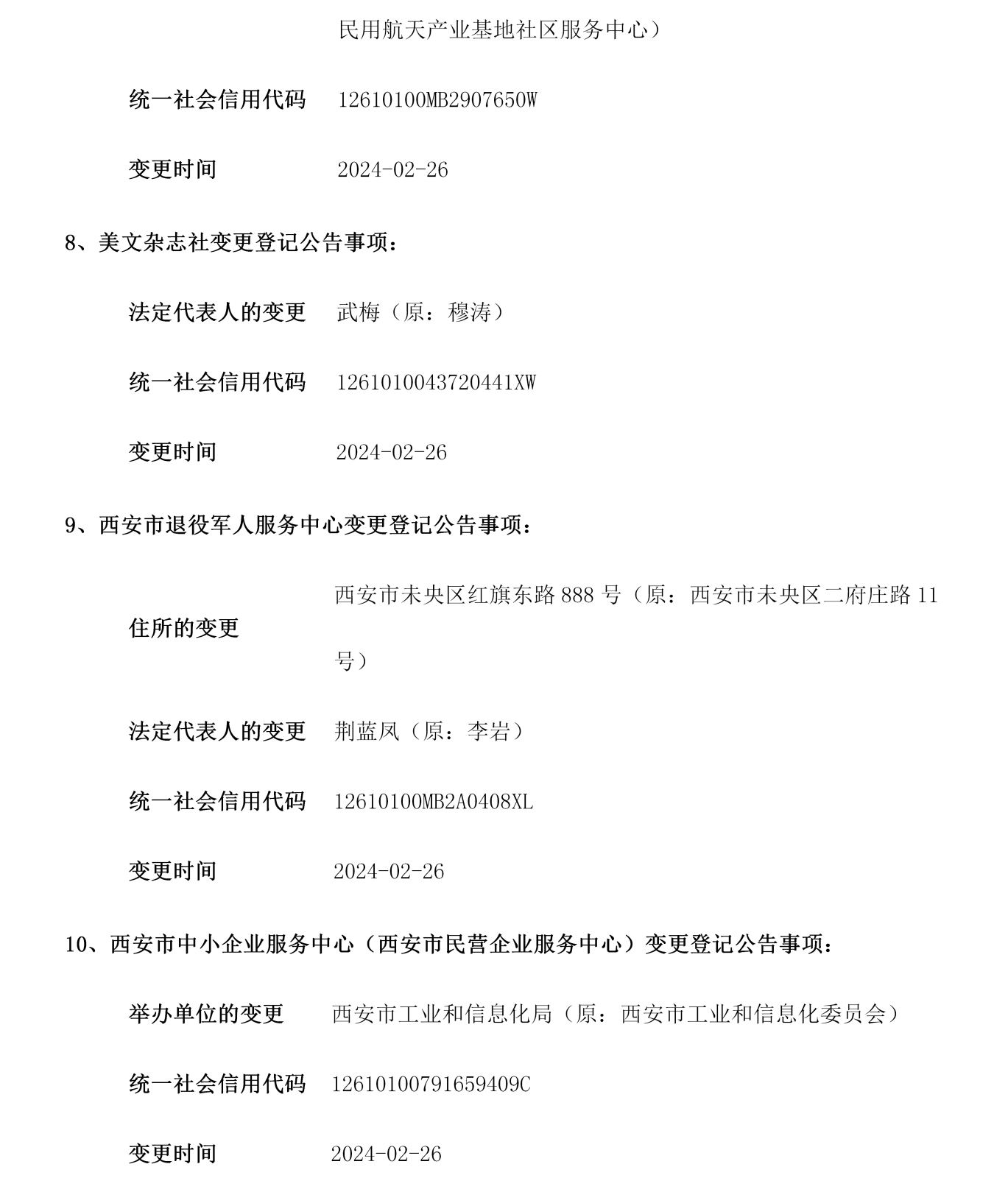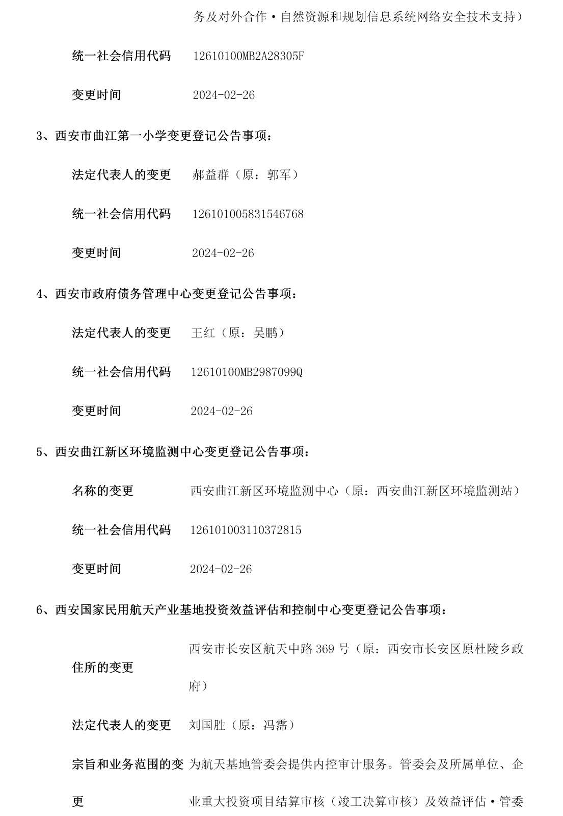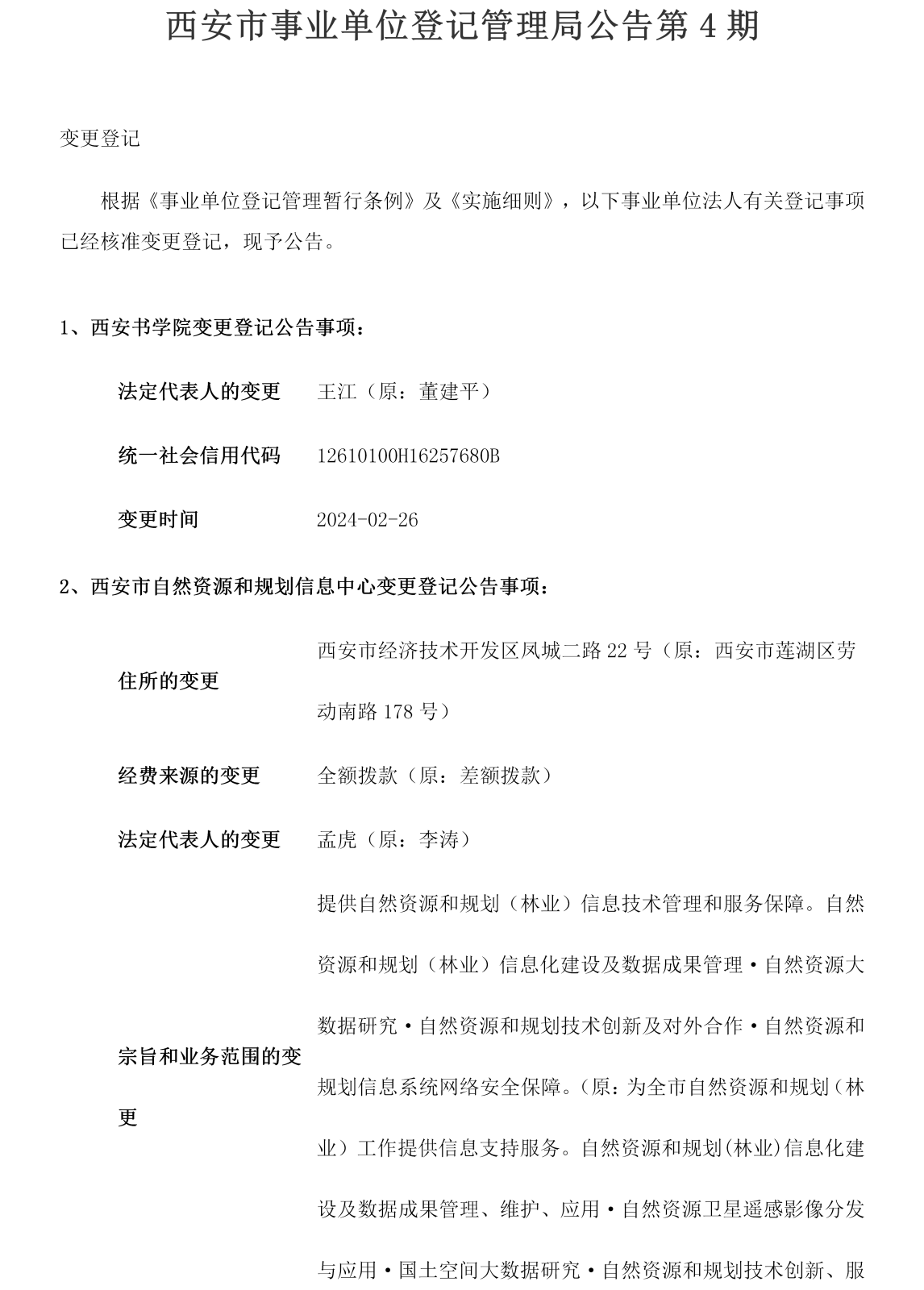 西安市事业单位登记管理局公告(第202404期)