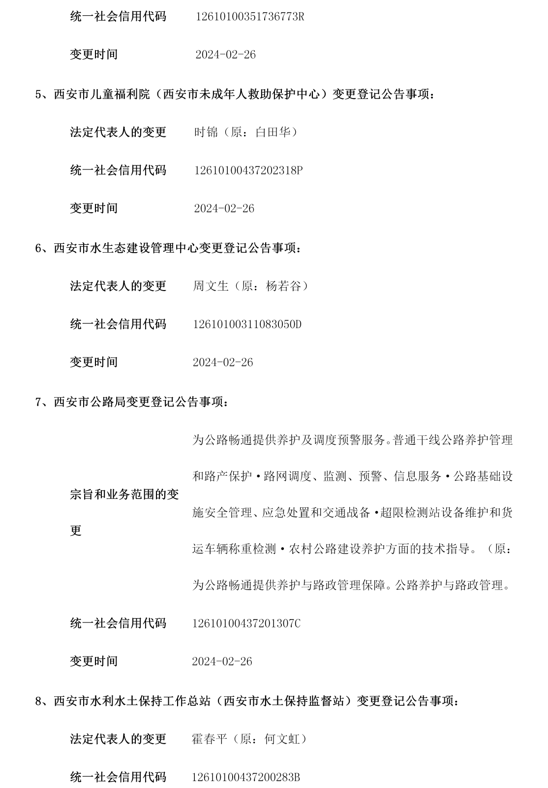 西安市事业单位登记管理局公告(第202408期)