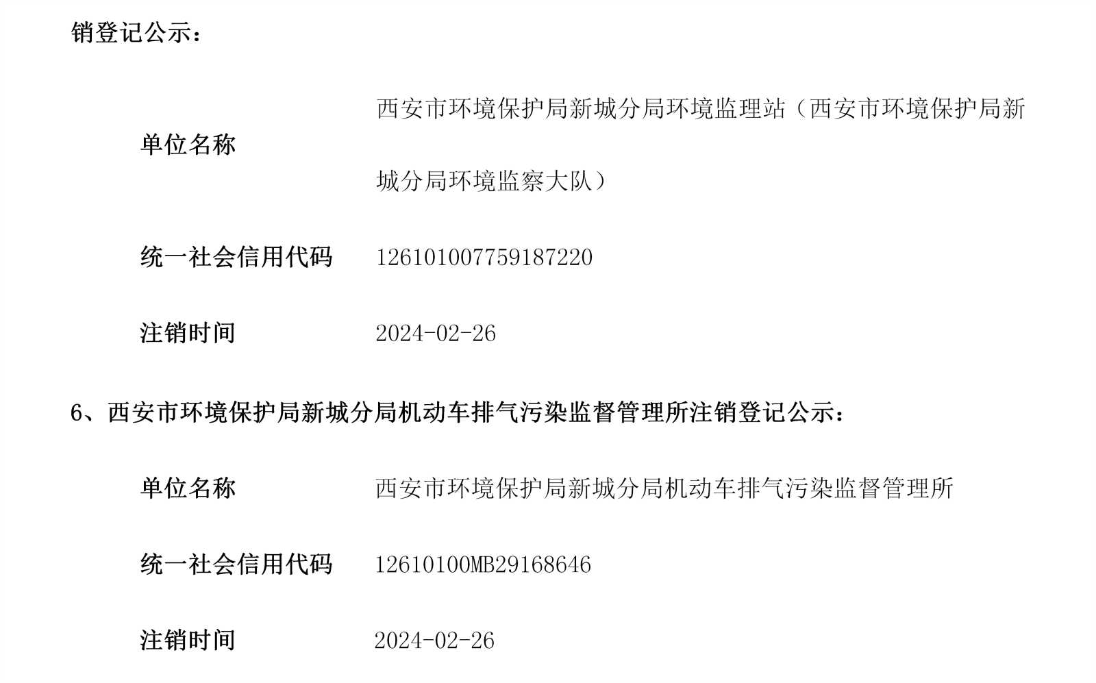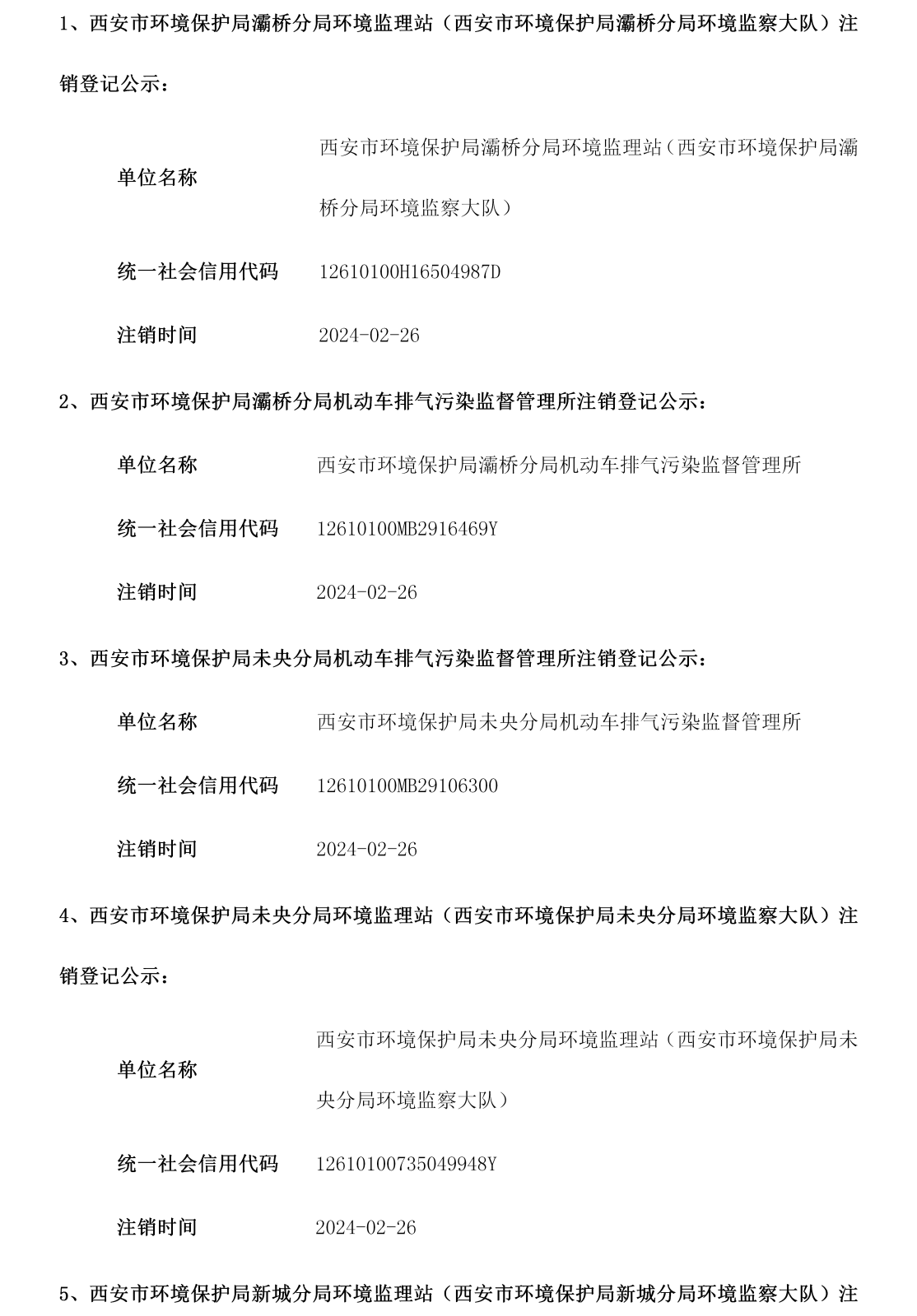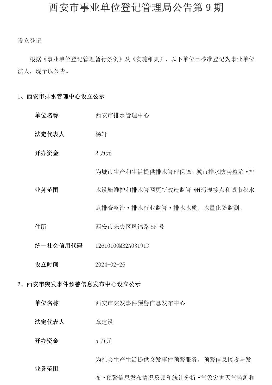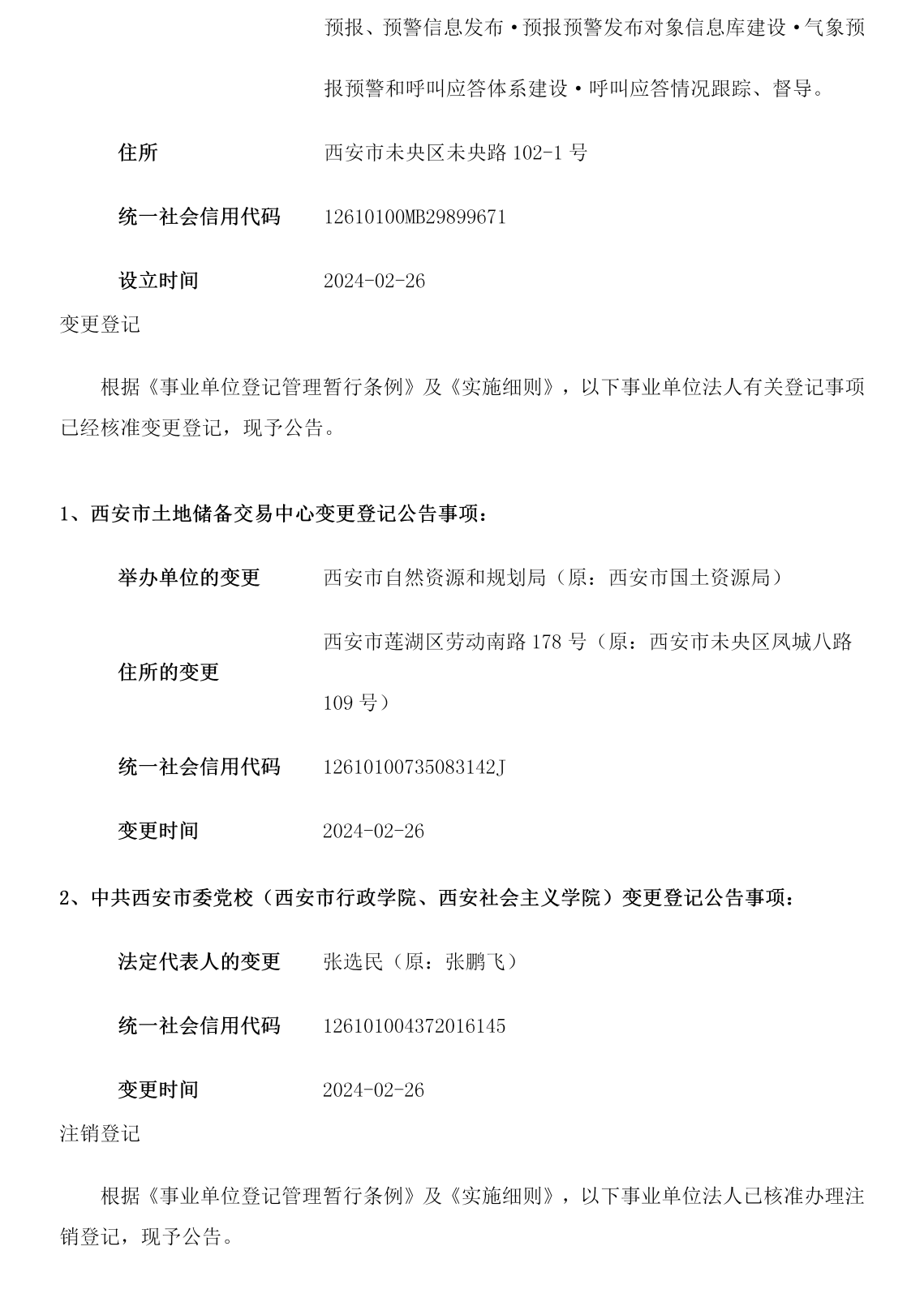 西安市事业单位登记管理局公告(第202409期)