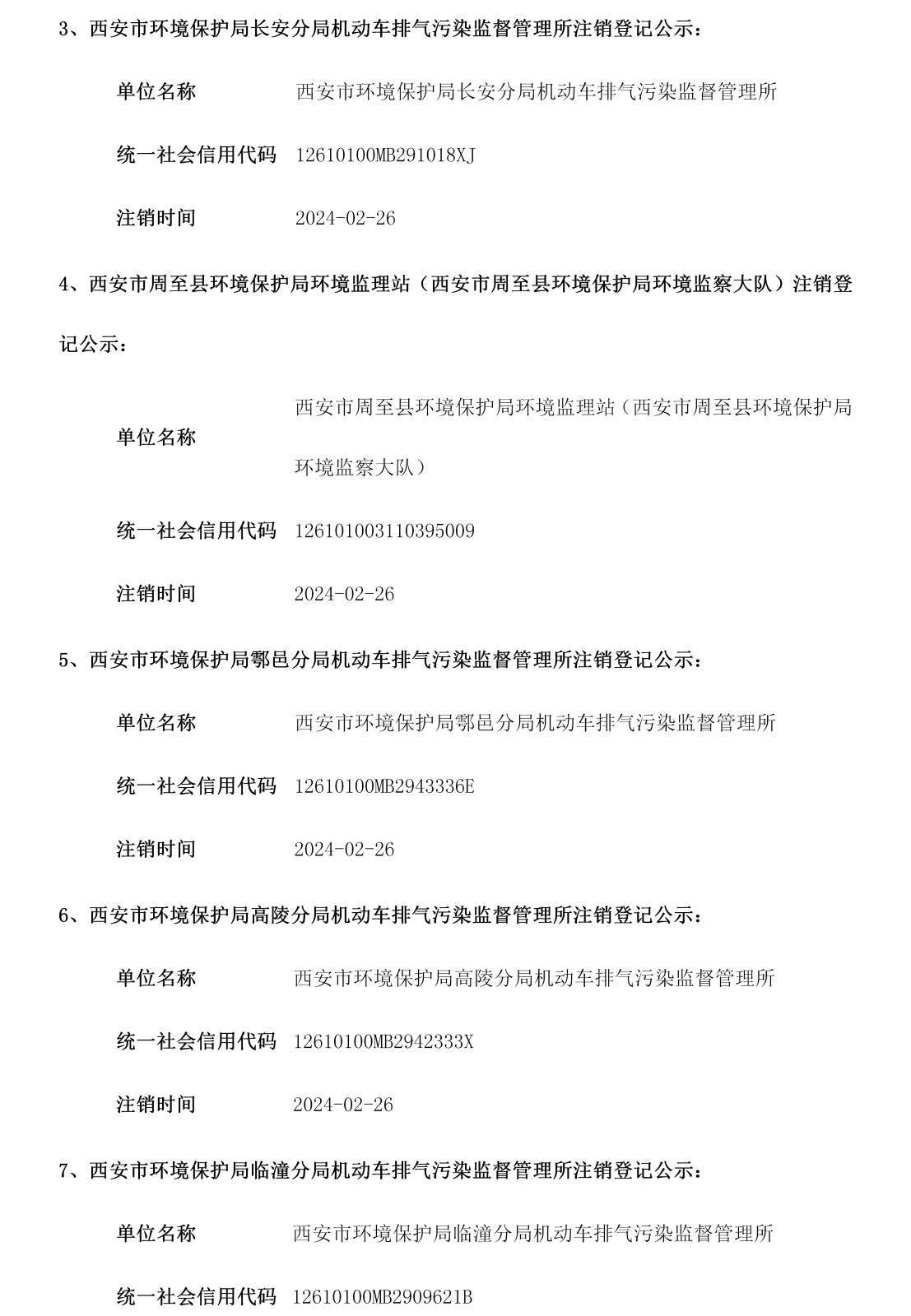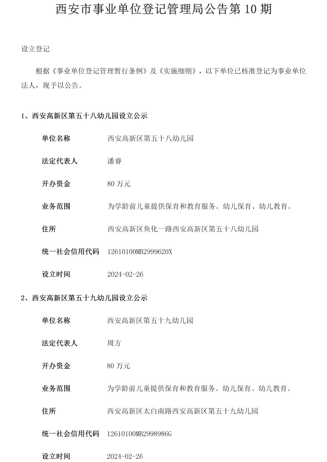 西安市事业单位登记管理局公告(第202410期)