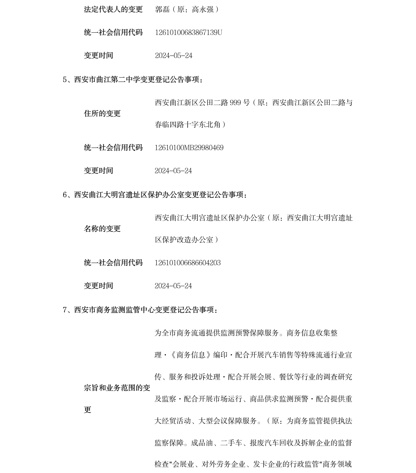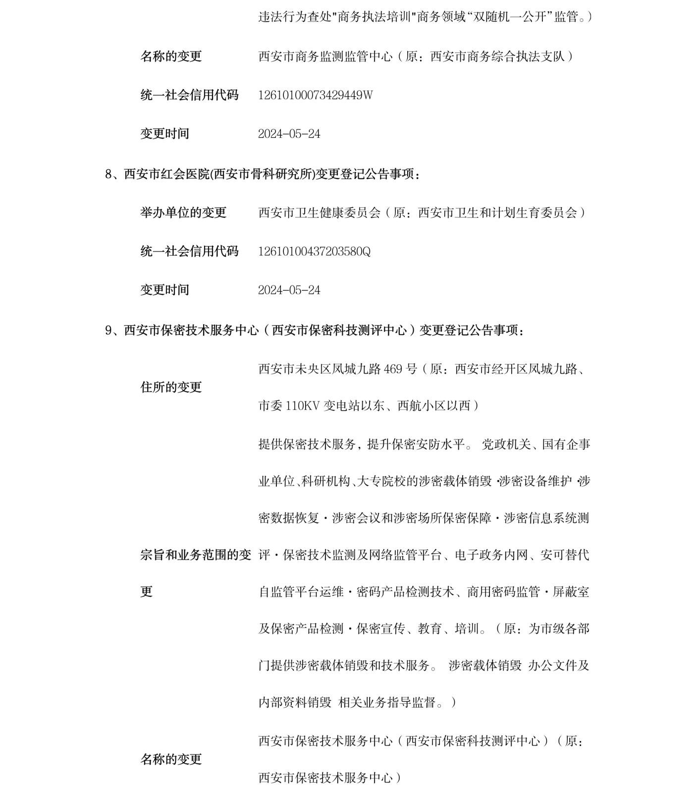 西安市事业单位登记管理局公告(第202412期)