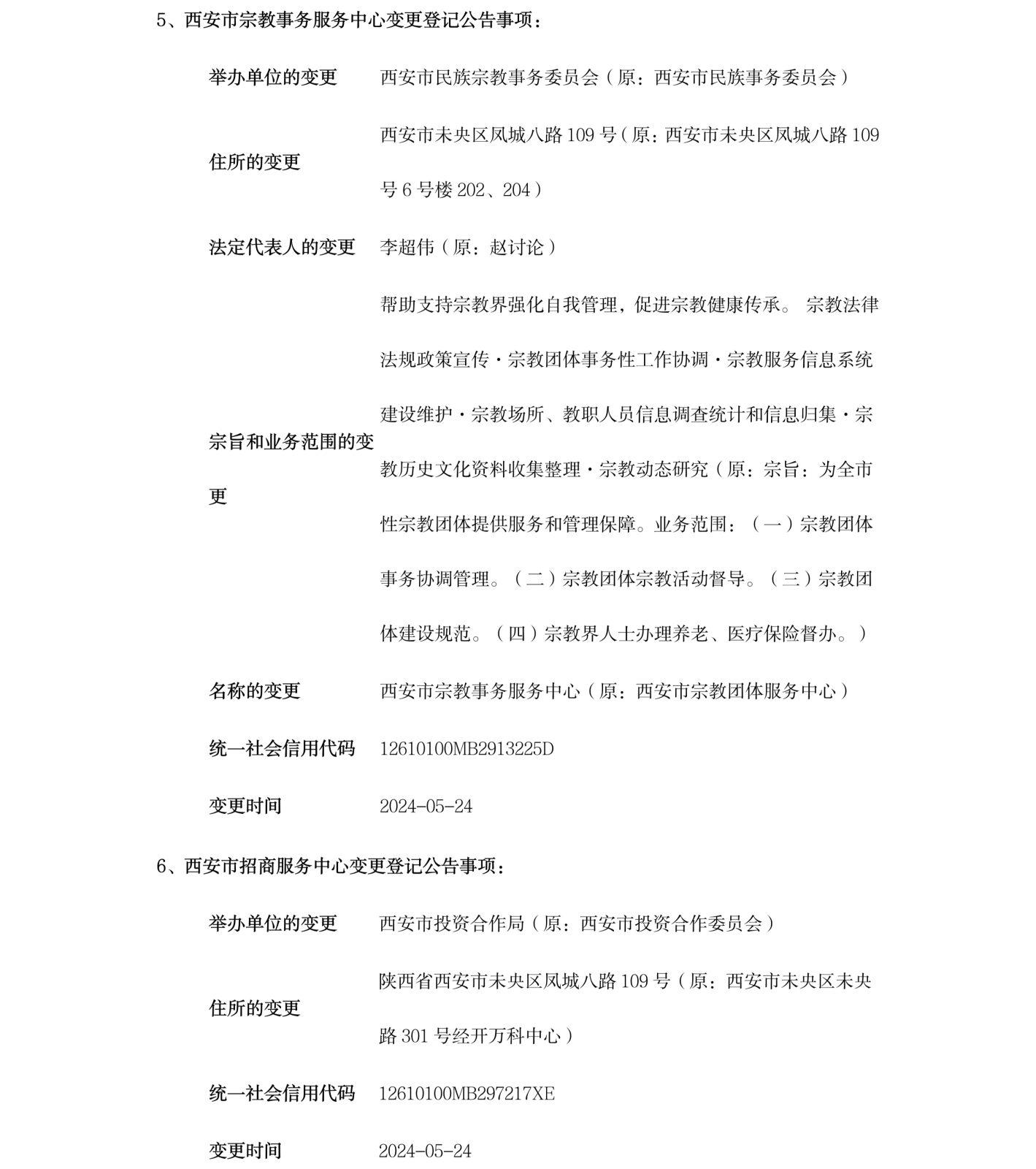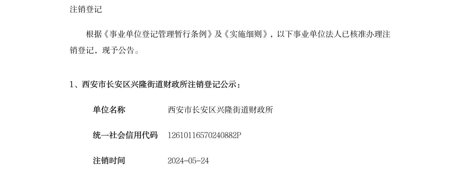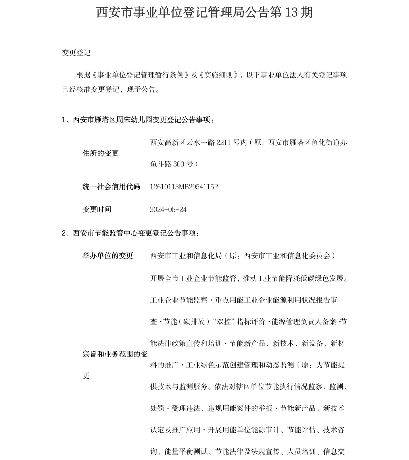 西安市事业单位登记管理局公告(第202413期)