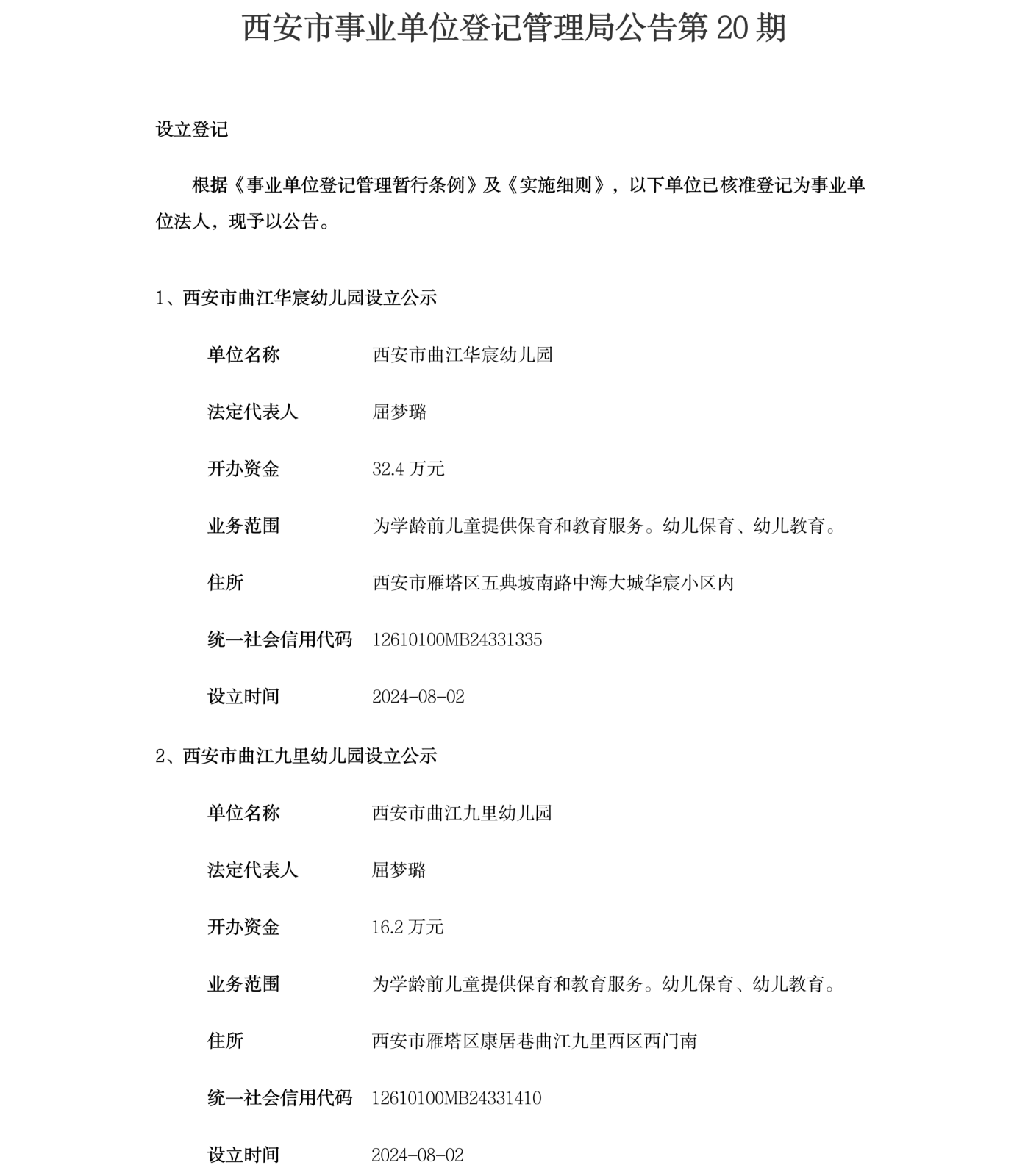 西安市事业单位登记管理局公告(第202420期)