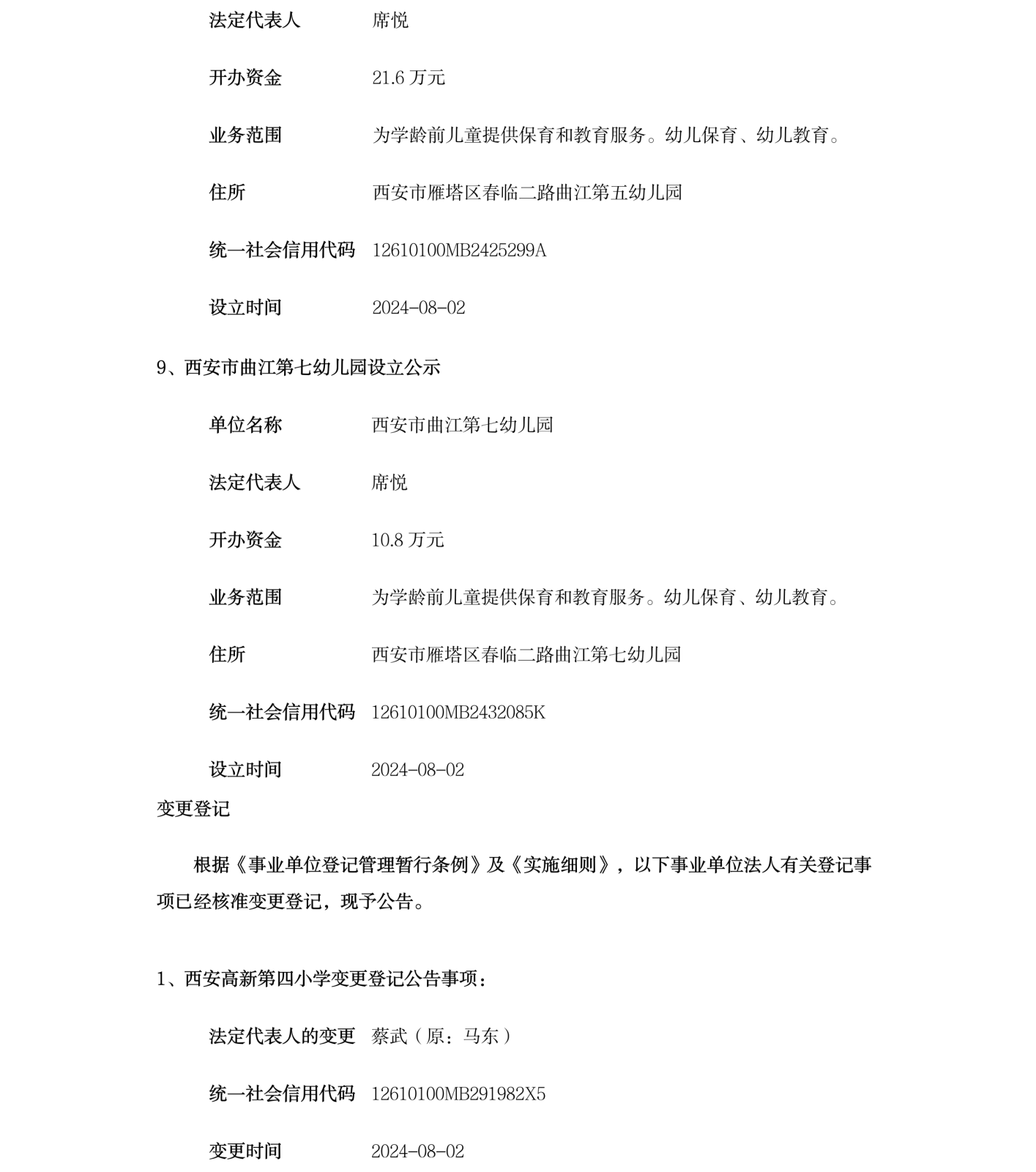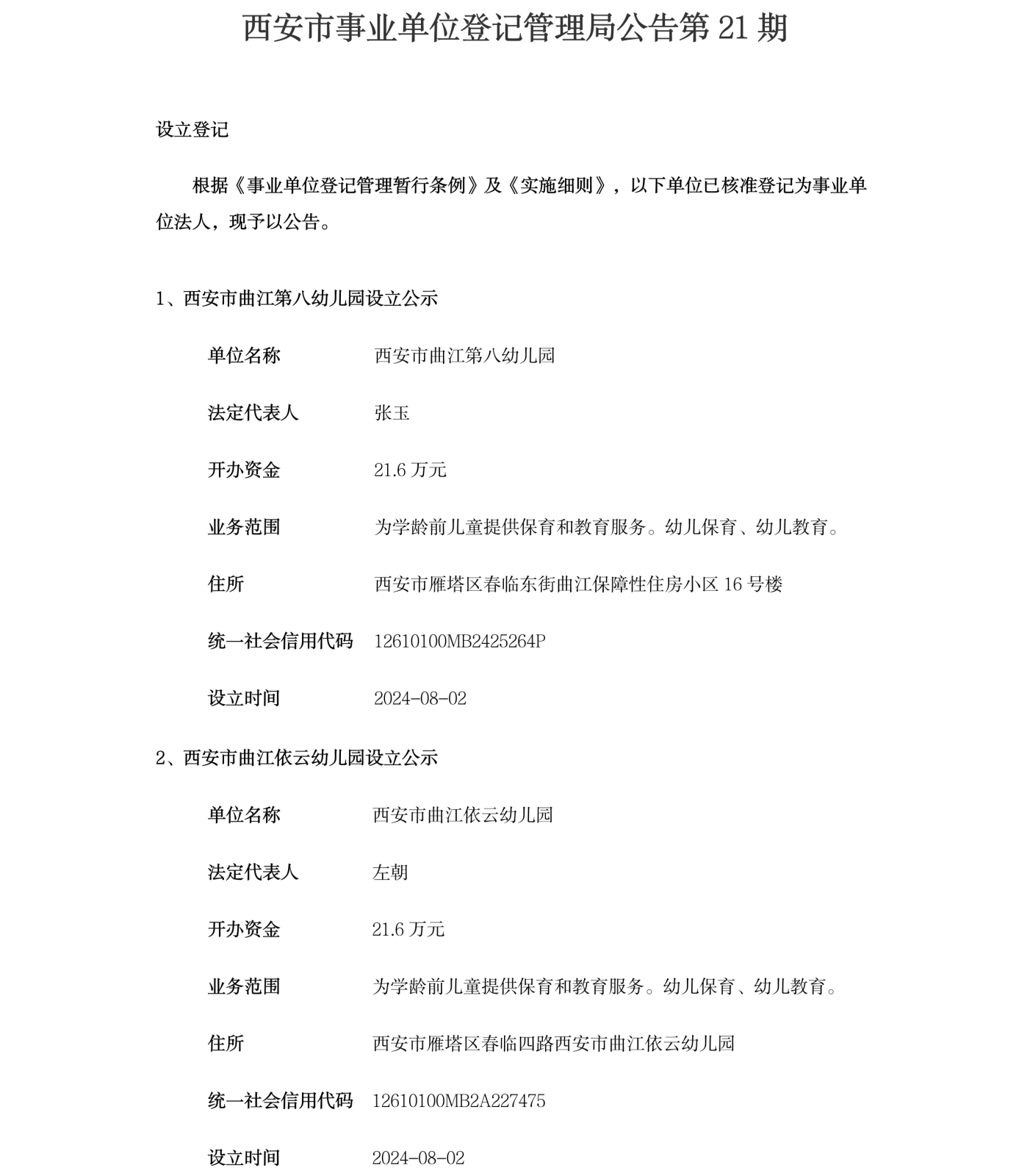 西安市事业单位登记管理局公告(第202421期)