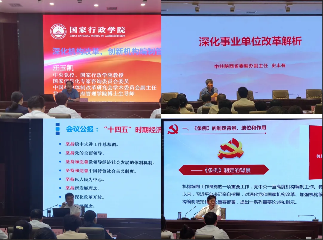 本次培训以课堂教学为主,重点围绕学习贯彻党的十九届五中全会精神、习近平总书记关于机构编制工作重要论述、贯彻落实《中国共产党机构编制工作条例》、深化机构改革创新机构编制管理、深化事业单位改革等设计培训内容。培训班邀请了中国行政体制改革研究会副会长汪玉凯、陕西省委编办副主任史丰有、西北大学公共管理学院院长雷晓康、市委编办督查专员张忠芳分别作专题辅导。授课内容统筹兼顾了业务能力和综合素质“双提高”,紧紧围绕当前机构编制工作新形势新任务新要求,主题突出、内容丰富,具有很强的针对性、指导性、时效性,对进一步提升机构编制队伍能力素质,增强推进各项改革管理的综合能力具有重要意义。